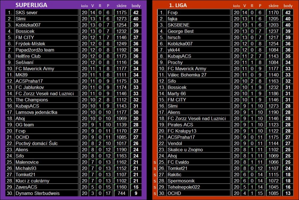 - podrobné výsledky duelů z jednotlivých ligových a divizních soutěží, které přineseme postupně a samostatně v následujících dnech, včetně žebříčku s pořadím týmů a info z Okresního přeboru