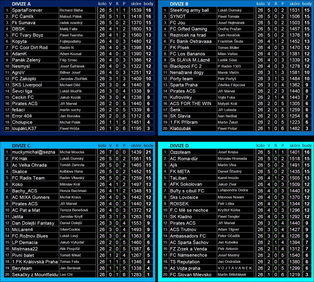 Tabulky po 26. kole fantasy